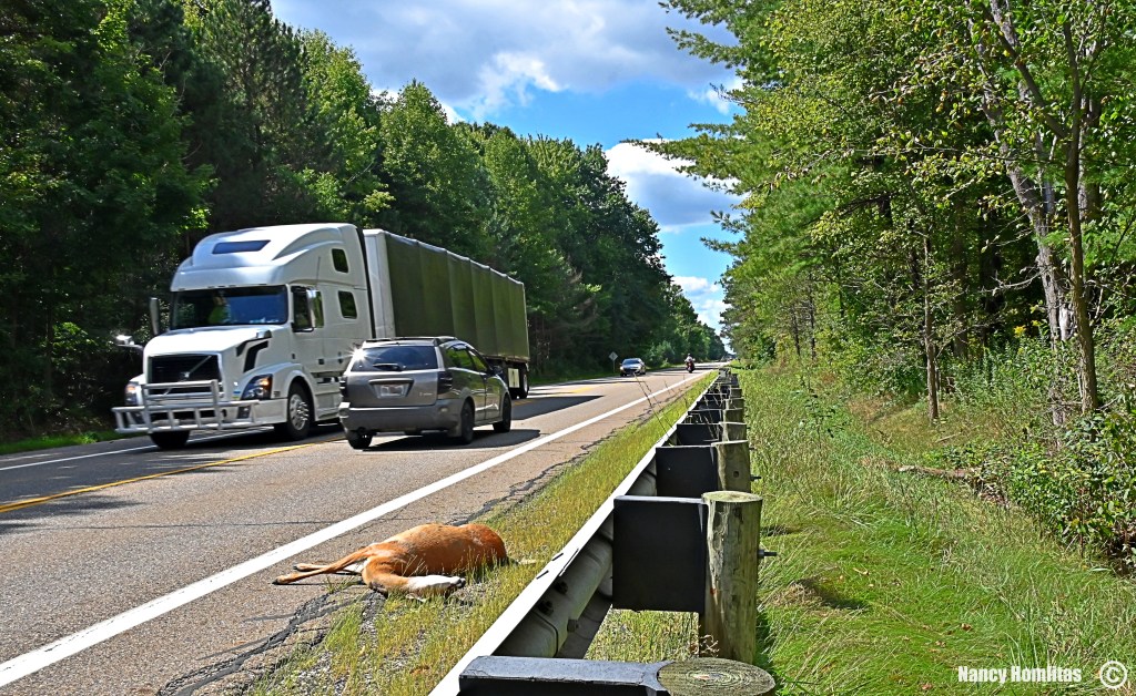 When I spotted crows on the side of the road feasting on a deer carcass, I inhaled and held my breath until I got past the maggoty stench wake. Then I glanced in my rearview mirror.